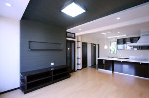 若夫婦のリビングと寝室を確保するため、子ども部屋として利用していた6畳プラスロフトの部屋が2つ並んであったのを、一部屋としてアーリーアメリカンにモダンさを加えたデザインに変えました。